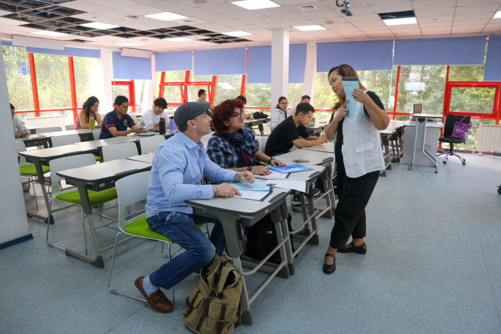 “In my courses, I rely heavily on active learning strategies that require group discussions, and to my disappointment, students almost always switch to Russian—even though most of them can communicate quite well in English. I do not believe it would be right to enforce English in these situations, but I consistently encourage its use. To set the tone, I conduct all my classes and office hours exclusively in English, modeling the standard that I believe we should all strive toward,” Bekmagambetov said.