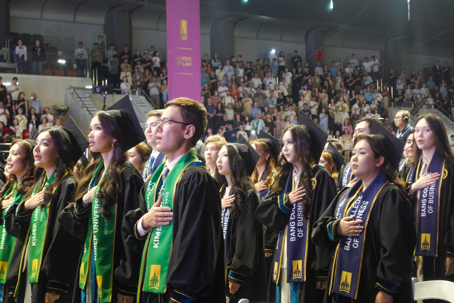 On a scorching May afternoon, when the weather in Almaty felt more like summer than spring, KIMEP students were preoccupied with more than just the heat. May 17, 2025, the day of the university’s 32nd graduation ceremony, marked the end of one chapter and the exciting beginning of another. The event, held at the Baluan Sholak Sports Palace on Abay Avenue, was a chance for proud family members and friends of students to watch their loved ones receive the diplomas they had worked so hard to earn.